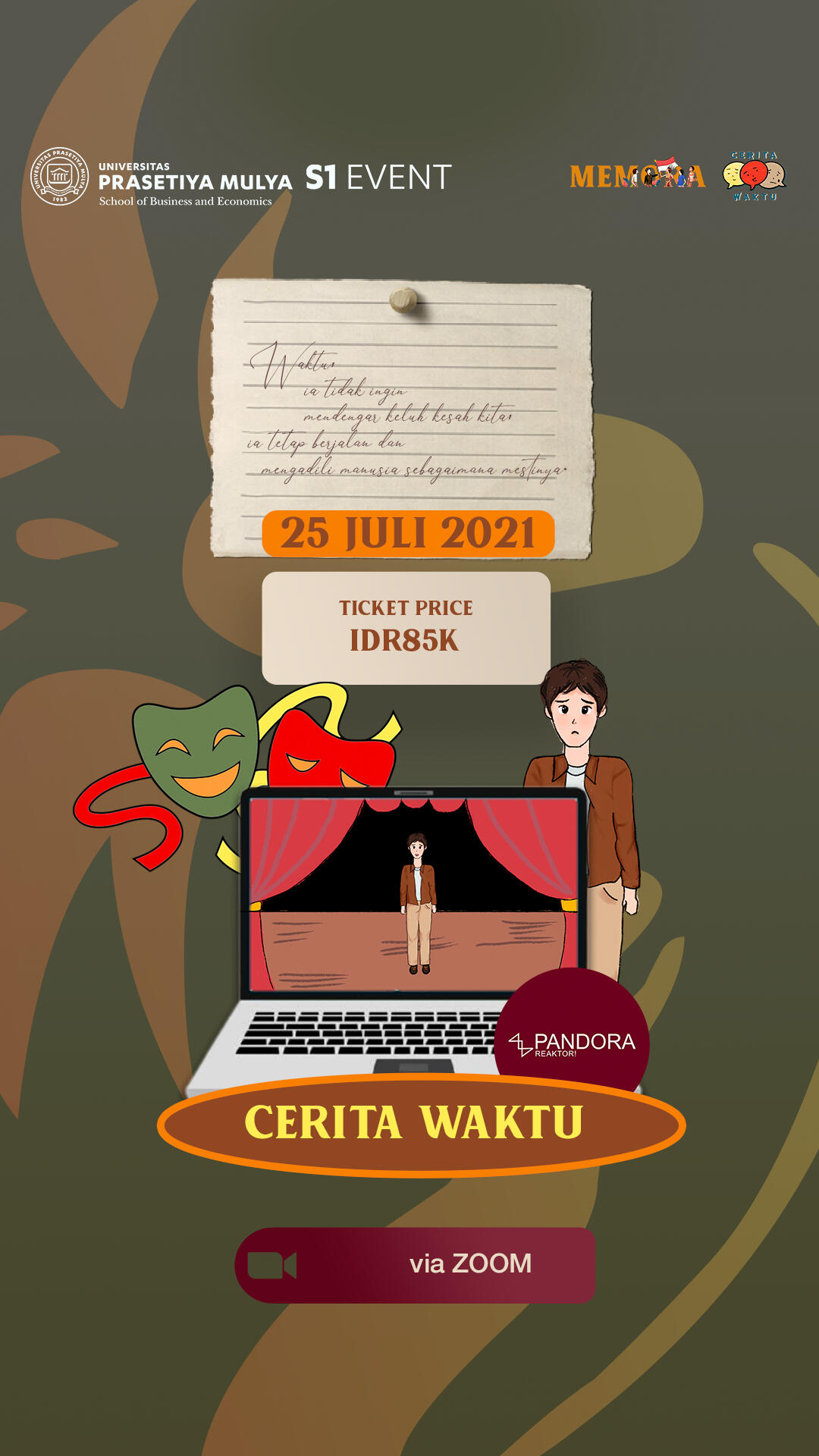 Memora bersama Pandora akan membawa kalian kedalam memori masa lalu yang penuh kenangan berharga. Bagaimana kehangatan kasih sayang itu dipertahankan oleh waktu? Temukan jawabannya di Online Theatre Cerita Waktu yah!